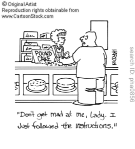 - Read the instructions. No – don’t look at the diagrams, gloss over and think that you know. Read it for understanding. Are you clear? So many times in life we skim over things for the gist and conclude that “we know” about x or y. “No you don’t!” Until you understand thoroughly the information on hand you still just have a vague idea as to what needs to be done.