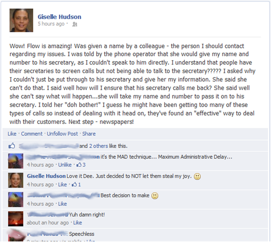 I’d had one bad experience after another with FLOW Trinidad and Tobago, culminating in today’s experience when I tried to take my concerns to someone who could DO something about my situation!