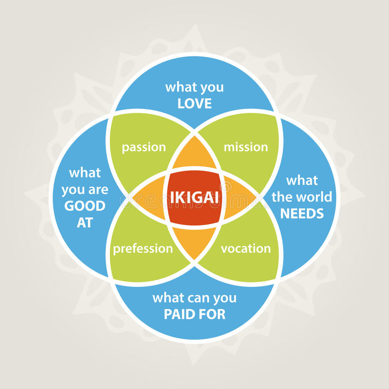 More recently, exploring your ikigai has become popular. [If you’re interested in exploring this further click here for a workbook guiding you through Finding your Ikigai.]